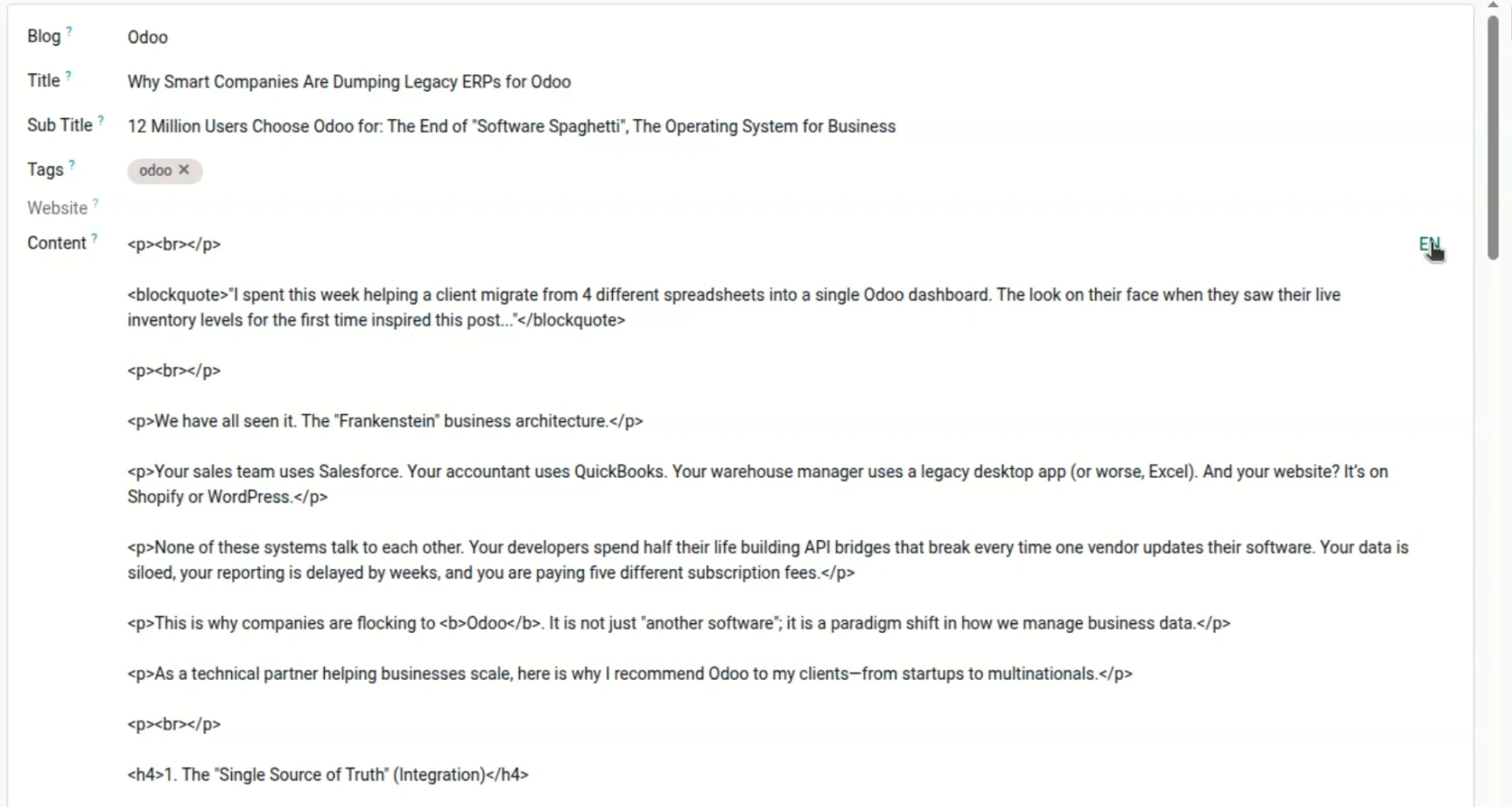 6. Magic happens: there is a new form field called "Content". Click the "EN" for translation.