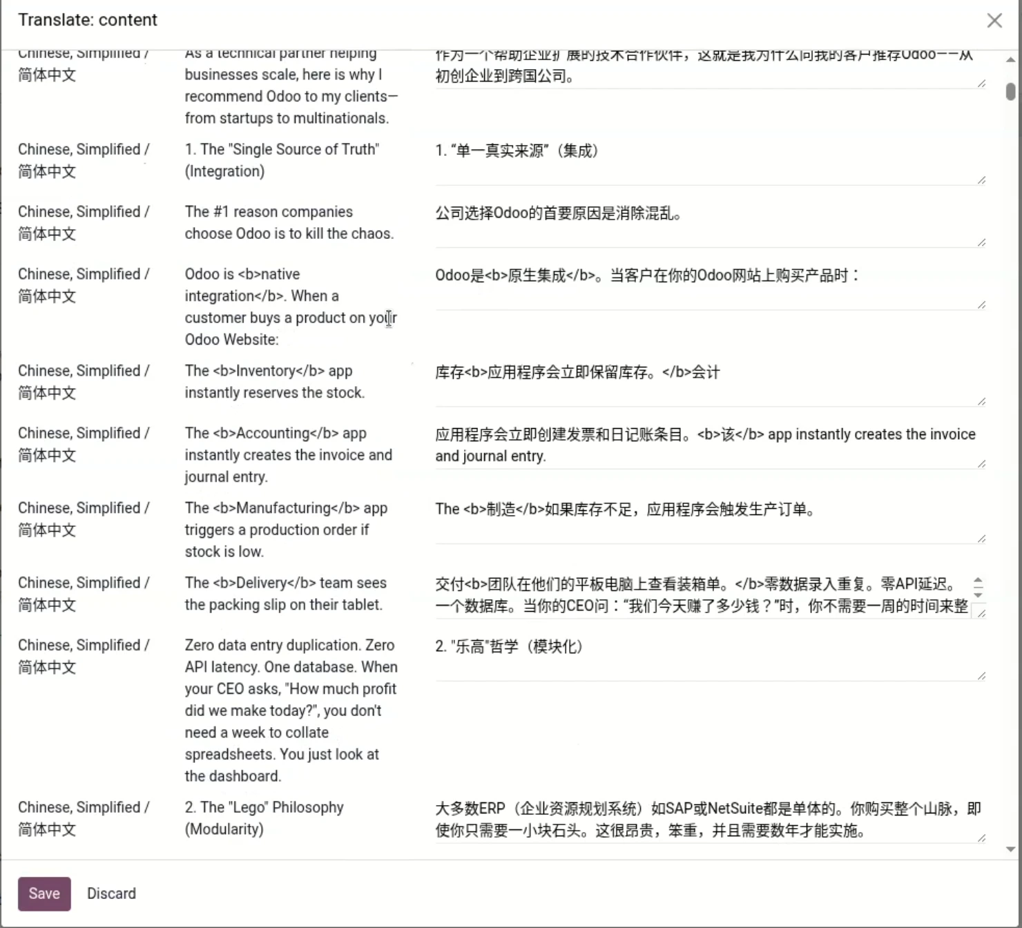 7. Now we can see the mismatch between my original english text and my Chinese translation. We can fix it manually, easily.